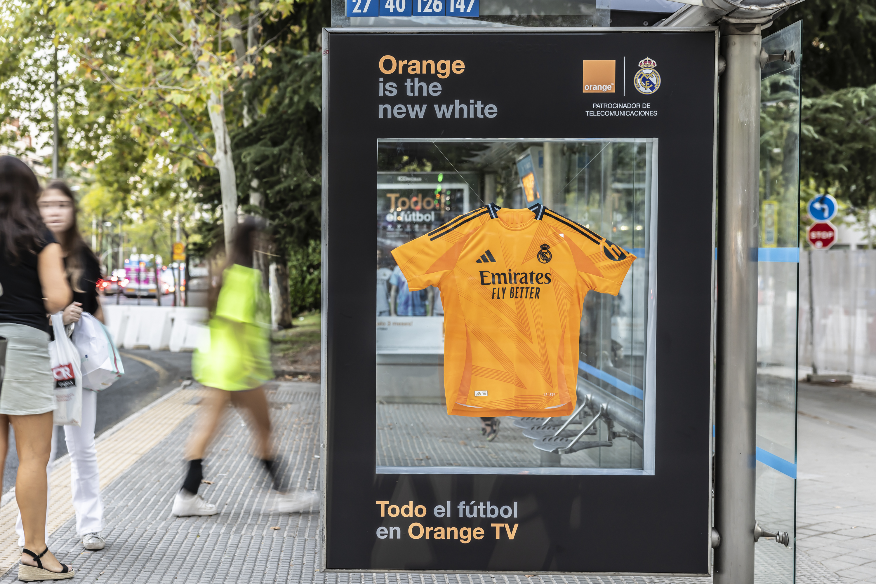 En este contexto, Orange presenta la campaña “Orange is the new white” ideada por Dentsu Creative, comunicando en el medio exterior a través de cinco marquesinas de JCDecaux seleccionadas en las inmediaciones del estadio del Real Madrid, el Santiago Bernabéu. Cada marquesina ha sido vaciada para mostrar en su interior la equipación naranja del Real Madrid, vinculando mediante el color a la marca y al equipo para visibilizar el acuerdo de patrocinio tecnológico.