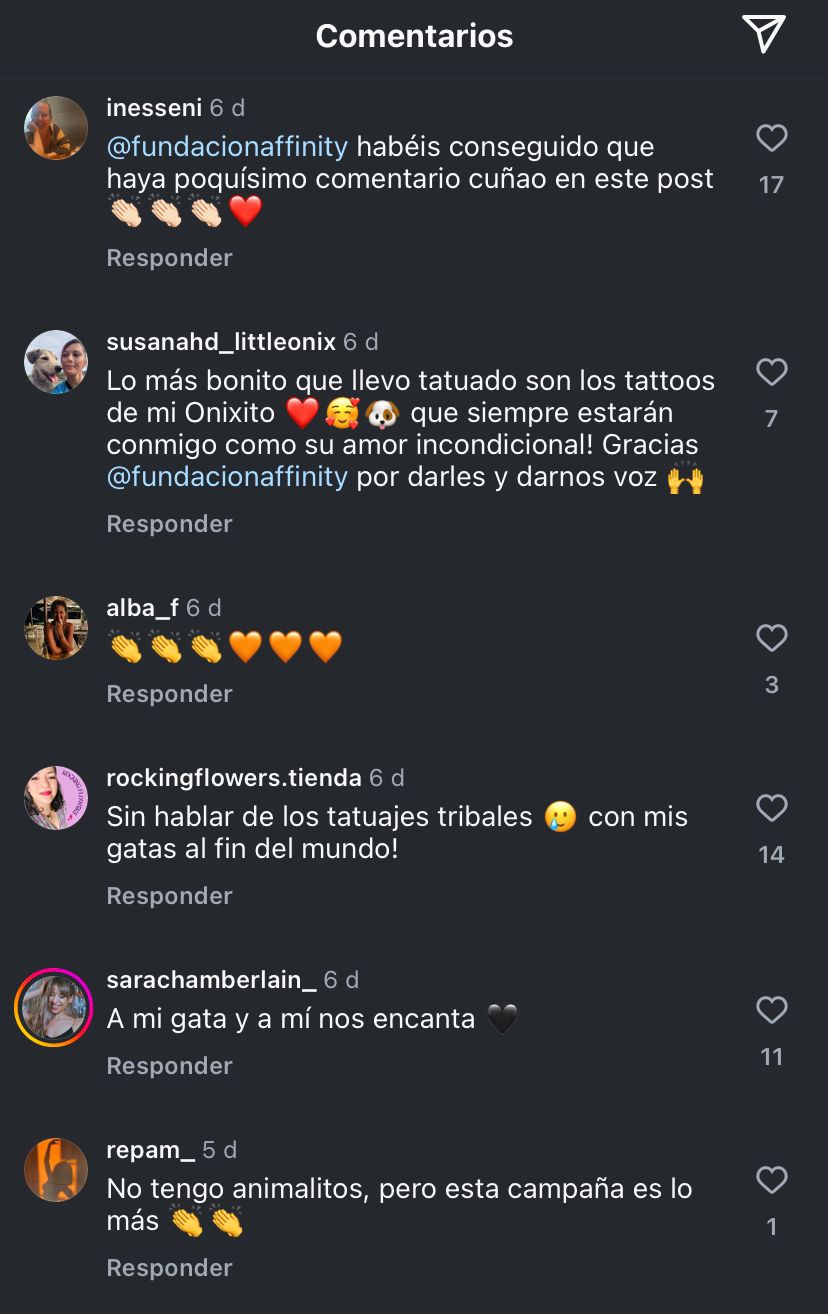 A través del ingenio y la ironía de Putos Modernos, Fundación Affinity invita a las personas a reflexionar sobre sus prejuicios y contradicciones, haciendo un guiño a los pet parents y posicionándose como sus defensores con mensajes ácidos como: Crees que una persona que le habla a su gato está hablando sola. Mandar audios de 12 minutos, Decir que los perros no están hechos para la ciudad. Tener un 4×4 sólo para subirte a la acera cuando vas a recoger a los niños al cole o Reírte de los gatos con nombre de persona. Llamar a tu pareja «gatita»