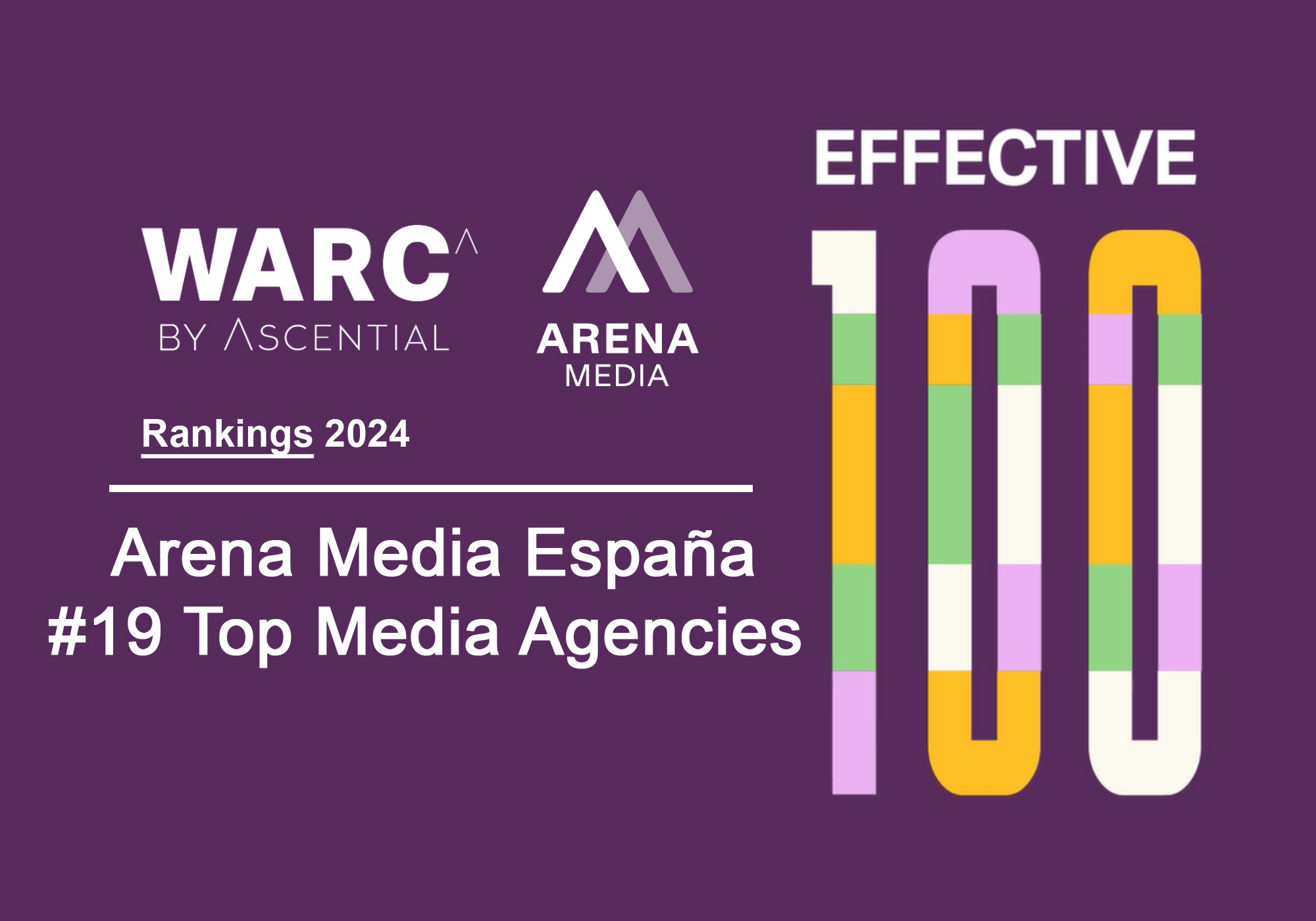 • Arena Media está en la posición #19 del ranking Top Media Agencies de WARC Effective 100 que recoge las campañas y empresas más eficaces del mundo, mejorando en 9 puestos respecto a la edición anterior.
